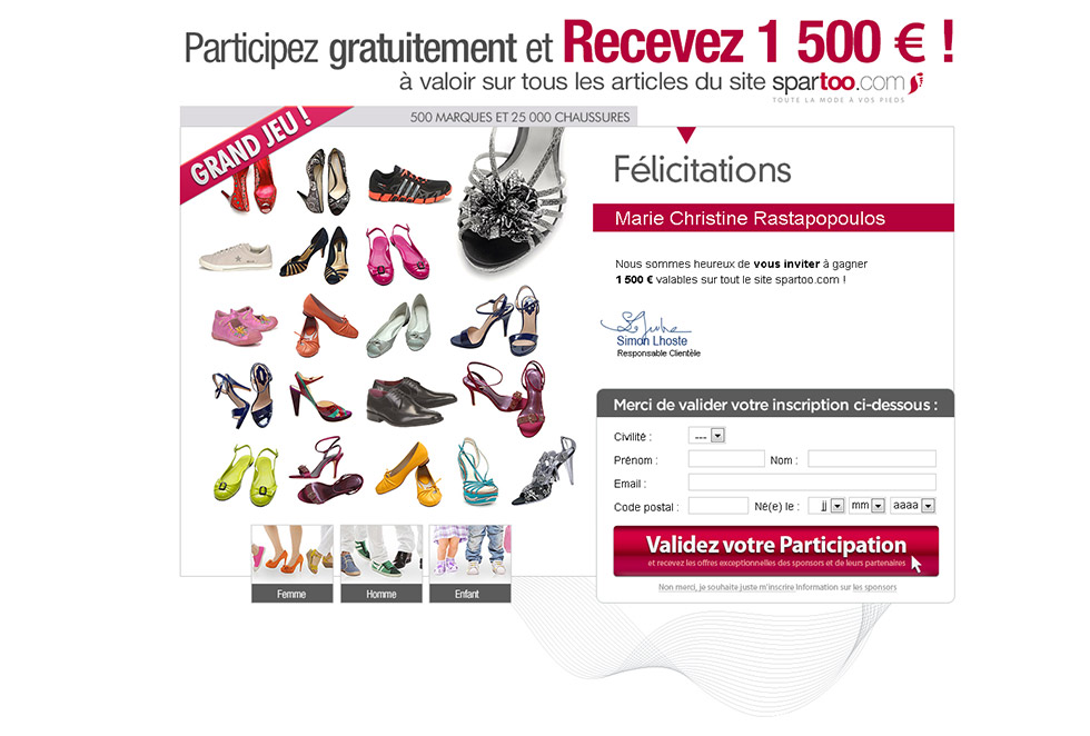 Para sus necesidades, OptinCollect le propone su experticia creando un concepto unico para su concurso además de gestionarlo completamente : Implementación de la página landing, creación de los kits email y generación del tráfico por Internet hacia su juego.
